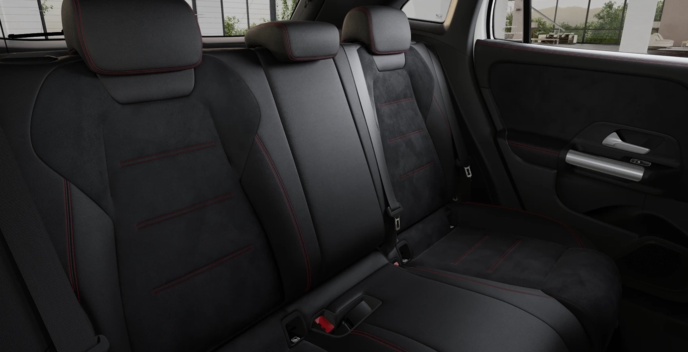 - Tapizado en símil de cuero ARTICO / microfibra MICROCUT en negro con costuras rojas